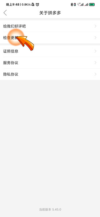4、最后点击“检查更新”选项,将拼多多软件版本更至最新后,再重新打开应用查看。