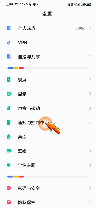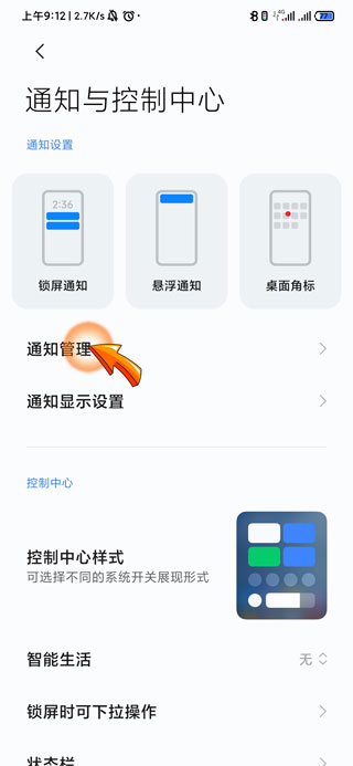 2、然后点击设置页面中的“通知与控制中心”选项。