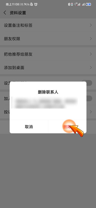 微信删了对方,对方能看到自己,但是不会有相关的系统提醒,微信删除好友需要打开微信APP,点击对方的“头像”图标,然后点击页面右上角的“三点”符号,再点击的“删除”选项,最后点击弹出窗口中的“删除”选项即可。