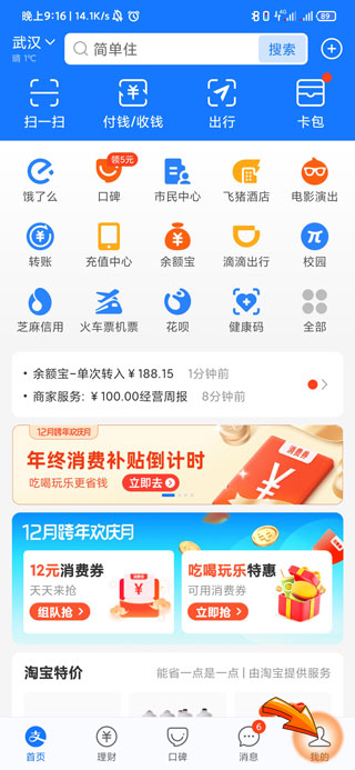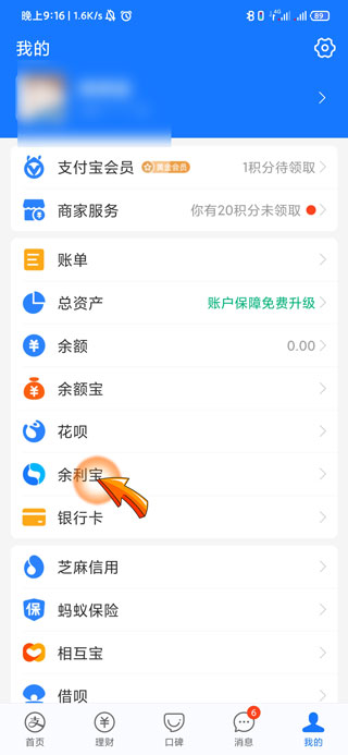 1、支付宝关闭余利宝自动转入首先需要打开支付宝APP,点击首页右下角的“我的”图标。