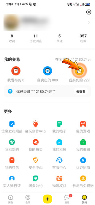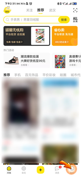 1、闲鱼删除购买记录首先需要打开闲鱼APP,点击页面右下角的“我的”图标。