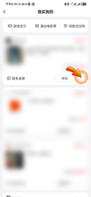 3、然后找到购买订单,点击其右下方的“三点”符号。
