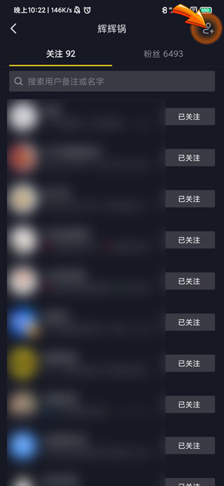 3、进入页面后即可查看已关注的人,并且点击右上角的“人像”图标,能够搜索关注他人。