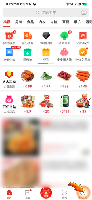 1、拼多多退款首先需要打开拼多多APP,点击首页右下角的“个人中心”图标。