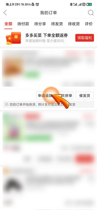 拼多多退款需要打开拼多多APP,点击页面右下角的“个人中心”选项图标,然后点击我的订单右侧的“查看全部”选项,进入页面后找到需要退款的订单,点击订单下方的“申请退款”选项即可。