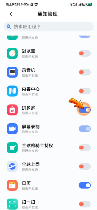 4、在通知管理中找到“拼多多”图标,点击关闭其右侧的开关按钮即可。