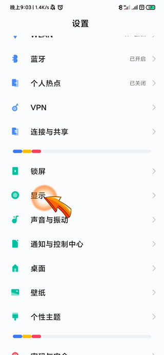2、然后找到并点击设置页面中的“显示”选项。