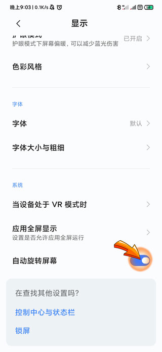 3、最后点击关闭页面底部的“自动旋转屏幕”右侧开关按钮即可。