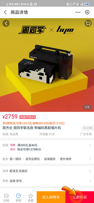 5、挑选好需要购买的商品后,点击右下角的“立即购买”选项。