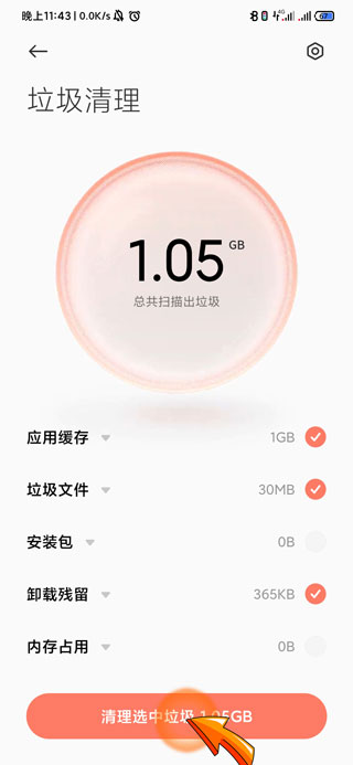 3、最后点击“清理选中的垃圾”选项即可释放手机内存空间。
