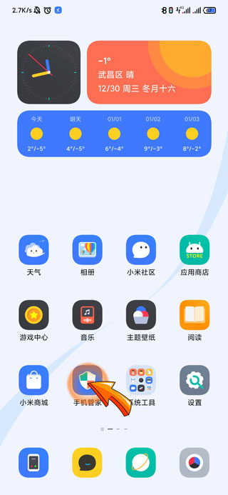 1、手机清理缓存首先需要点击打开桌面上的“手机管家”选项。
