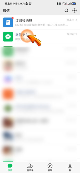 1、零钱明细查看首先需要打开微信APP,点击聊天页面中的“微信支付”选项。