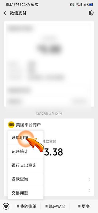3、再点击弹出窗口中的“账单明细”选项,即可查看微信账单信息。