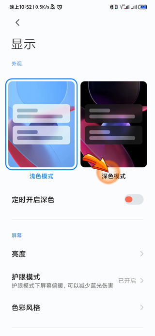3、最后点击外观显示图标下方的“深色模式”选项即可,淘宝将会跟随系统同步开启暗黑模式。