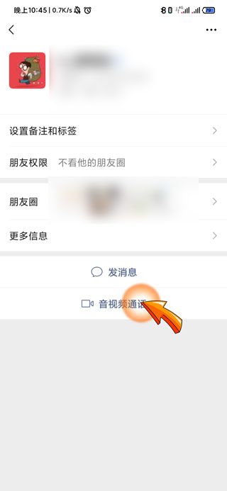 2、进入对方主页后,点击页面下方的“音视频通话”选项。