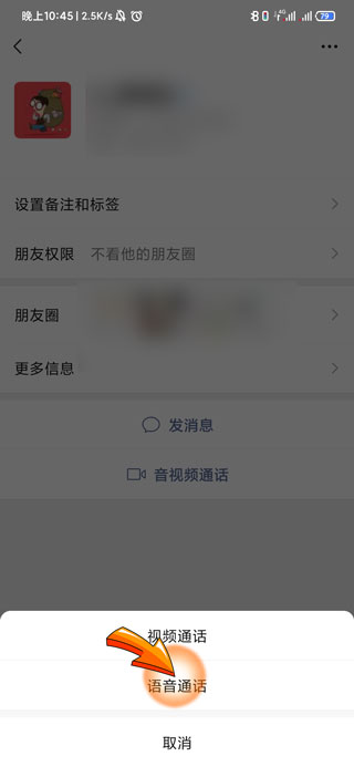 3、最后点击页面下方的“语音通话”选项即可与对方开启语音通话。