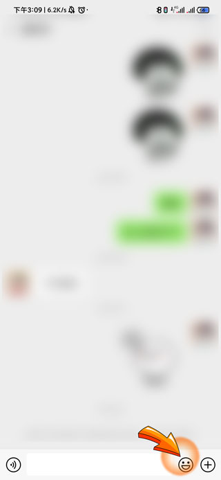 2、然后点击页面右下角的“笑脸”图标,此时页面会弹出自己收藏的表情包。