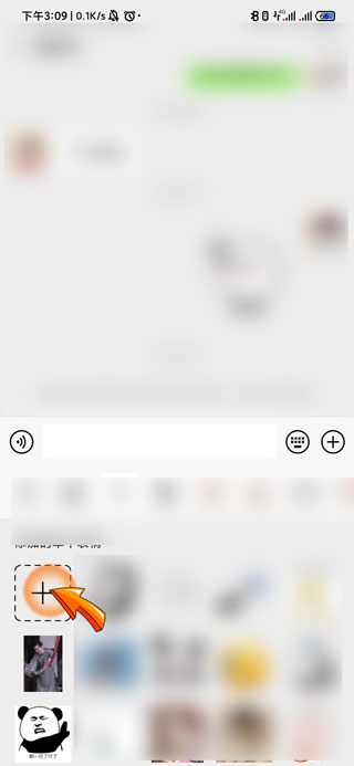 3、点击表情包中的“加号”图标。
