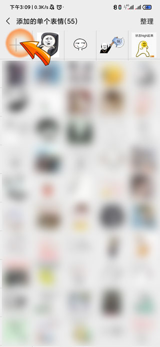 4、此时页面会显示所有添加的表情图片,再次点击右上方的“加号”图标即可上传表情包。
