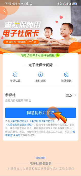 4、最后点击“同意协议并领取”选项后,填写相关信息即可绑定社保卡。