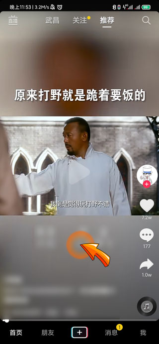 1、抖音关注对方首先需要打开抖音APP,如果出现对方视频后将视频向左滑动。