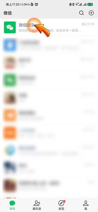 1、删除微信团队首先需要将微信APP打开,然后长按“微信团队”的图标。