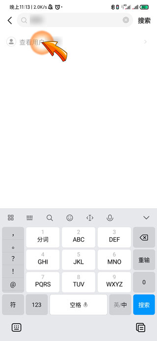 3、此时搜索栏下方会弹出“查看用户xxx”选项,点击该选项,就可以进入到对方的主页。