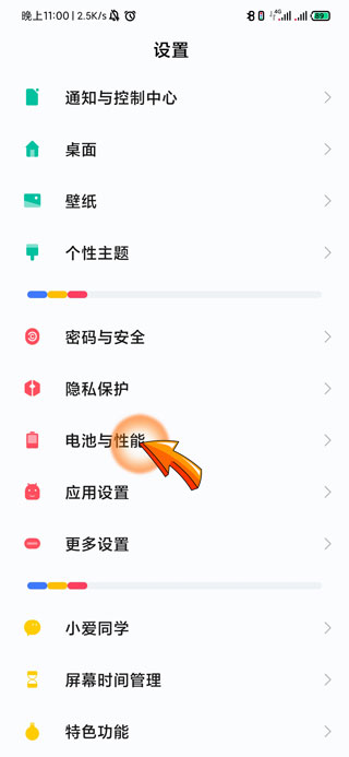 手机设置省电需要点击桌面上的“设置”图标,然后下滑设置页面找到并点击“电池与性能”选项,最后点击开启“省电模式”右侧的开关按钮,或者开启下方的“超级省电”模式,都可以使手机节省电量。