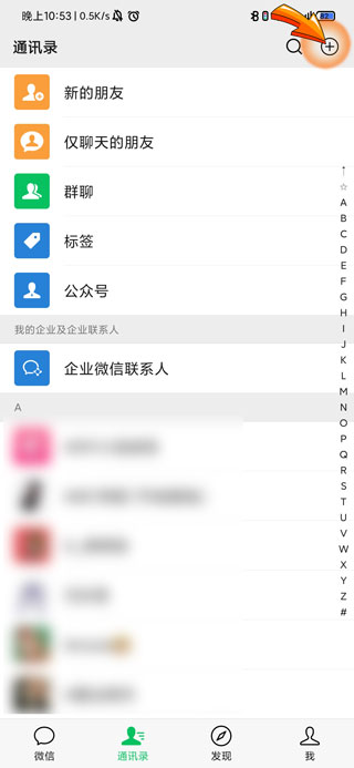 1、微信查看对方朋友圈首先需要添加对方为好友,打开微信APP,点击页面右上方的“加号”图标。