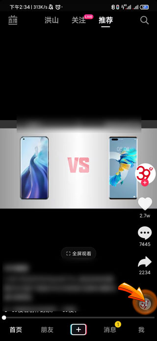 1、抖音拍同款需要打开抖音APP,点击需要拍摄同款视频右下角的“头像”图标。