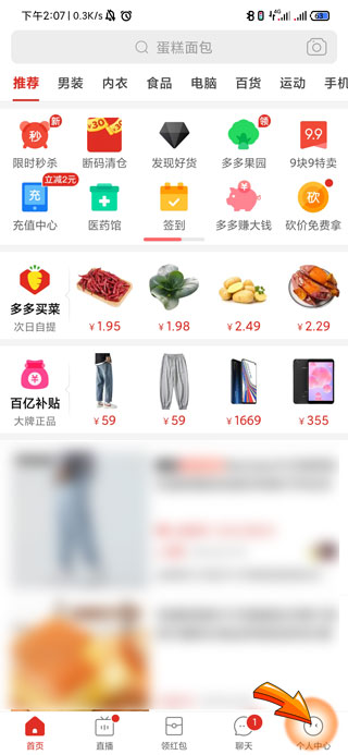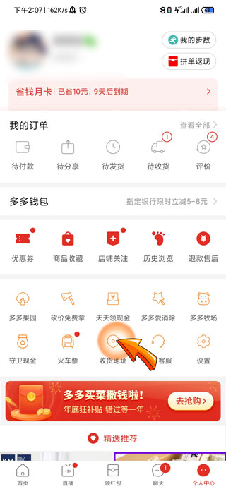 1、拼多多地址更改首先需要打开拼多多APP,点击页面右下角的“个人中心”选项。