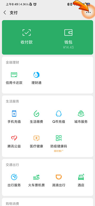3、进入支付页面后点击页面右上角的“三点”图标。