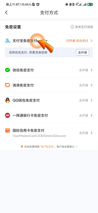 滴滴免密支付取消需要打开滴滴出行APP,点击页面左上方的“人像”图标,然后点击“钱包”选项,进入钱包页面后点击右上角的“支付设置”,选择需要取消的“免密支付”,最后点击页面下方的“关闭免密支付”选项即可。