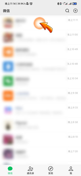 1、微信小程序微店搜索店铺首先需要打开微信APP,手指放置“微信”界面并向下滑动。