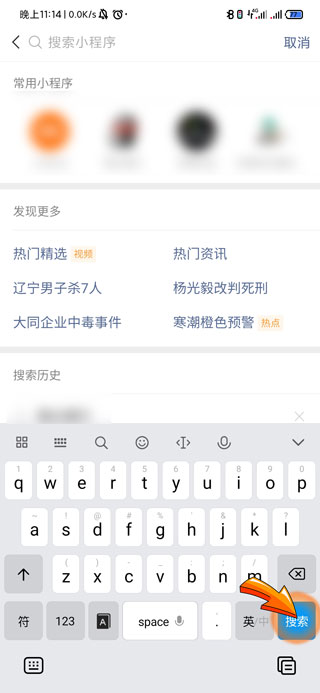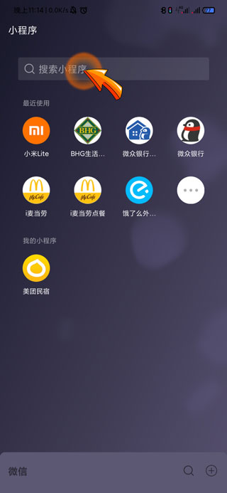 2、此时会进入微信小程序页面,点击“搜索小程序”处的搜索框。