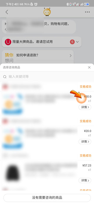 4、此时页面下方会弹出购买记录窗口,选择需要投诉的卖家“商品订单”进行投诉即可。