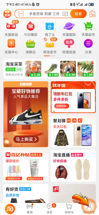 1、投诉淘宝商家首先需要打开淘宝APP,点击页面右下角的“我的淘宝”图标。