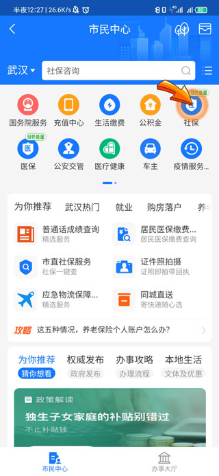 1、医保在支付宝缴首先费需要打开支付宝APP,点击首页中的“市民中心”图标。
