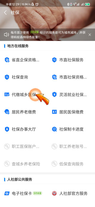 3、然后在社保页面中点击“代缴城乡医保”选项。