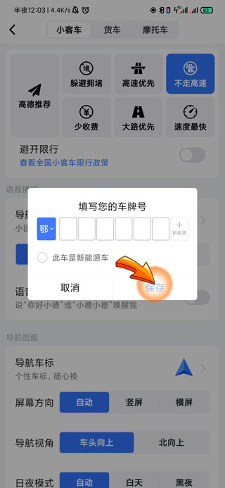 高德地图设置限行车牌的步骤