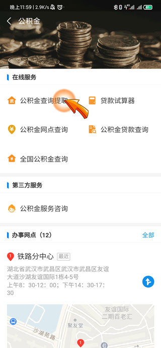 3、在公积金页面中点击“公积金查询提取”选项,然后进行公积金提取或者查询。