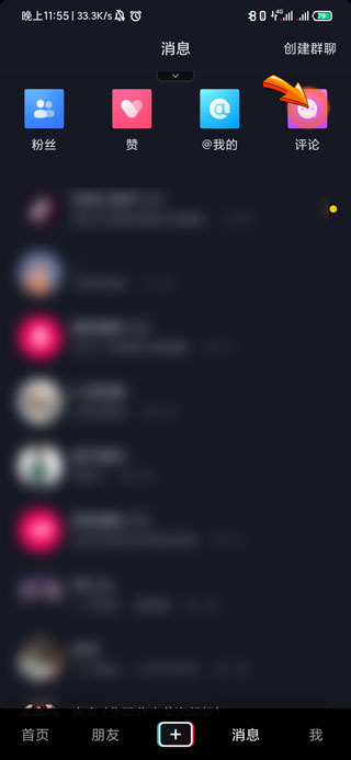 2、然后在消息页面中的右上侧会有“评论”图标,点击进入。