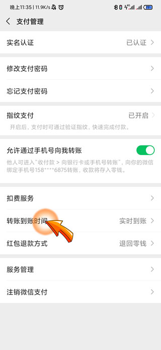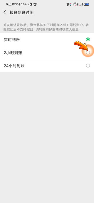 5、进入页面后即可将转账到账时间定为“2小时到账”或者“24小时到账”。