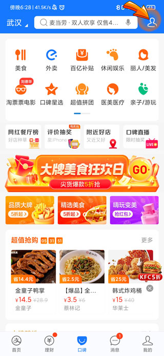 2、进入口碑页面后,点击口碑页面右上角的“人像”图标。