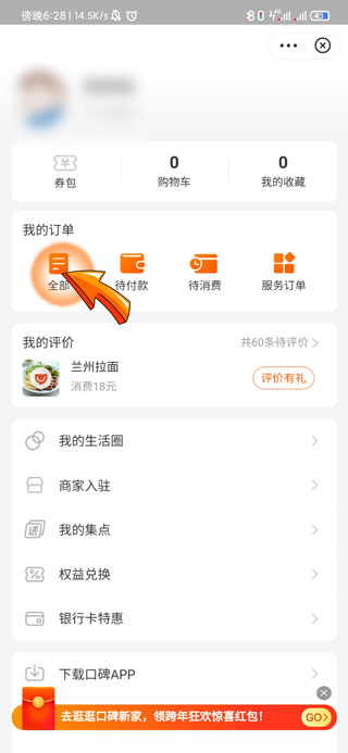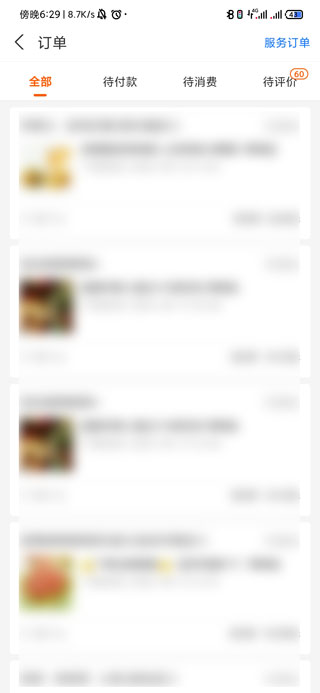 4、进入订单页面后,即可查看支付宝口碑的全部订单。