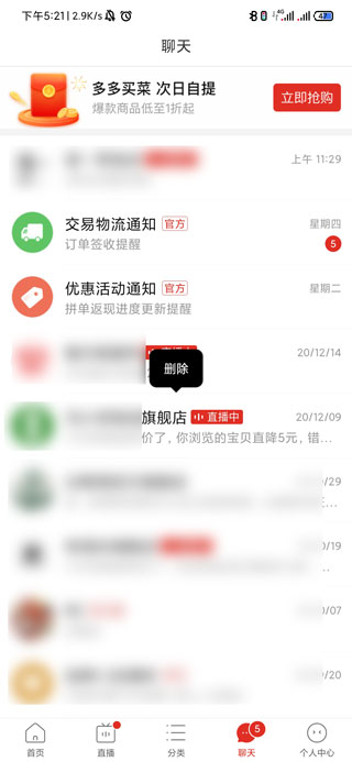 拼多多聊天记录的删除步骤