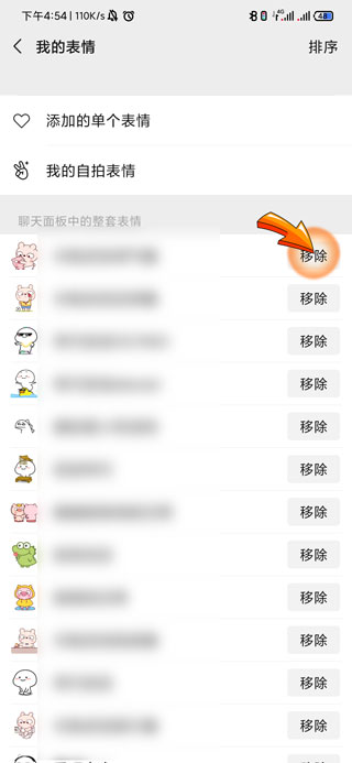 4、最后点击需要删除的表情包专辑右侧的“移除”选项即可。
