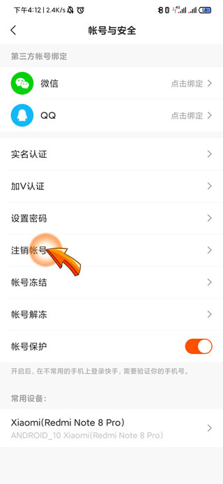 4、此时页面中部会有“注销账号”选项,点击进入。