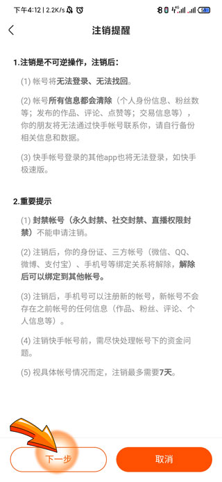 6、最后点击“确认注销”选项,快手账号就注销成功了。
