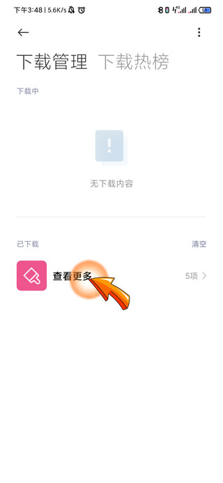 3、再点击下载管理页面下方的“查看更多”的选项,即可查看手机上下载的文件。